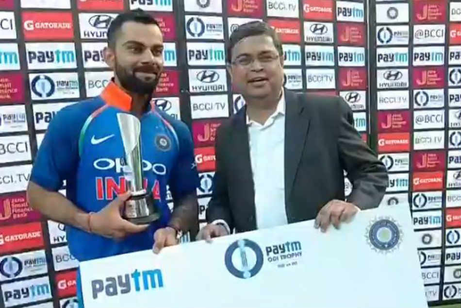 ఈ మ్యాచ్లో నాలుగు వికెట్లు తీసిన టీమిండియా ఆల్ రౌండర్ రవీంద్ర జడేజా మ్యాన్ ఆఫ్ ది మ్యాచ్గా ఎంపికయ్యాడు. మ్యాన్ ఆఫ్ ద సిరిస్ అవార్డుని కెప్టెన్ కోహ్లీ గెలుచుకున్నాడు. ఓపెనర్ శిఖర్ ధావన్ 6 పరుగులకే పెవిలియన్కు చేరగా, రోహిత్ శర్మ మరోసారి హాఫ్ సెంచరీతో మెరిశాడు. మొత్తం 56 బంతులు ఎదుర్కొన్న రోహిత్ శర్మ 5 ఫోర్లు, 4 సిక్సర్లతో 63 పరుగులు చేశాడు.