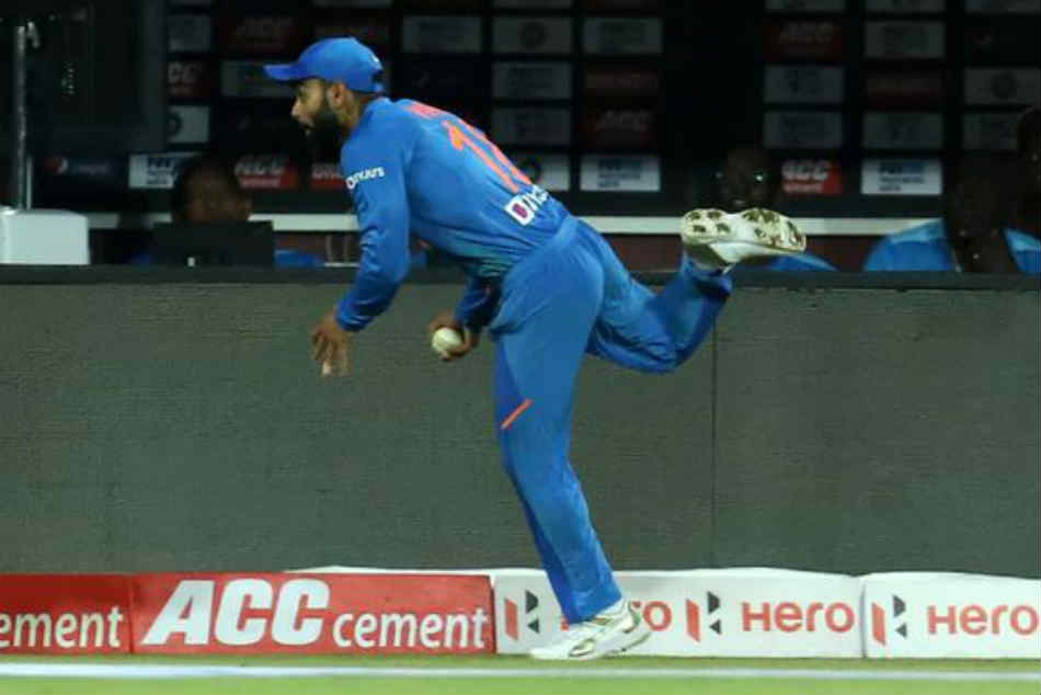 బంతిని అందుకున్నాక బౌండరీ లైన్కు తాకకుండా భారత కెప్టెన్ నియంత్రించుకున్న తీరు ప్రశంసనీయం. ఇందుకు సంబంధించి వీడియో సోషల్ మీడియాలో వైరల్ అవుతోంది. కాగా, అంతకముందు ఒకే ఓవర్లో రెండు క్యాచ్లను భారత ఫీల్డర్లు వదిలేశారు. భువీ వేసిన ఐదో ఓవర్లో సిమన్స్ ఇచ్చిన క్యాచ్ను మిడాఫ్లో వాషింగ్టన్ సుందర్ వదిలేశాడు.