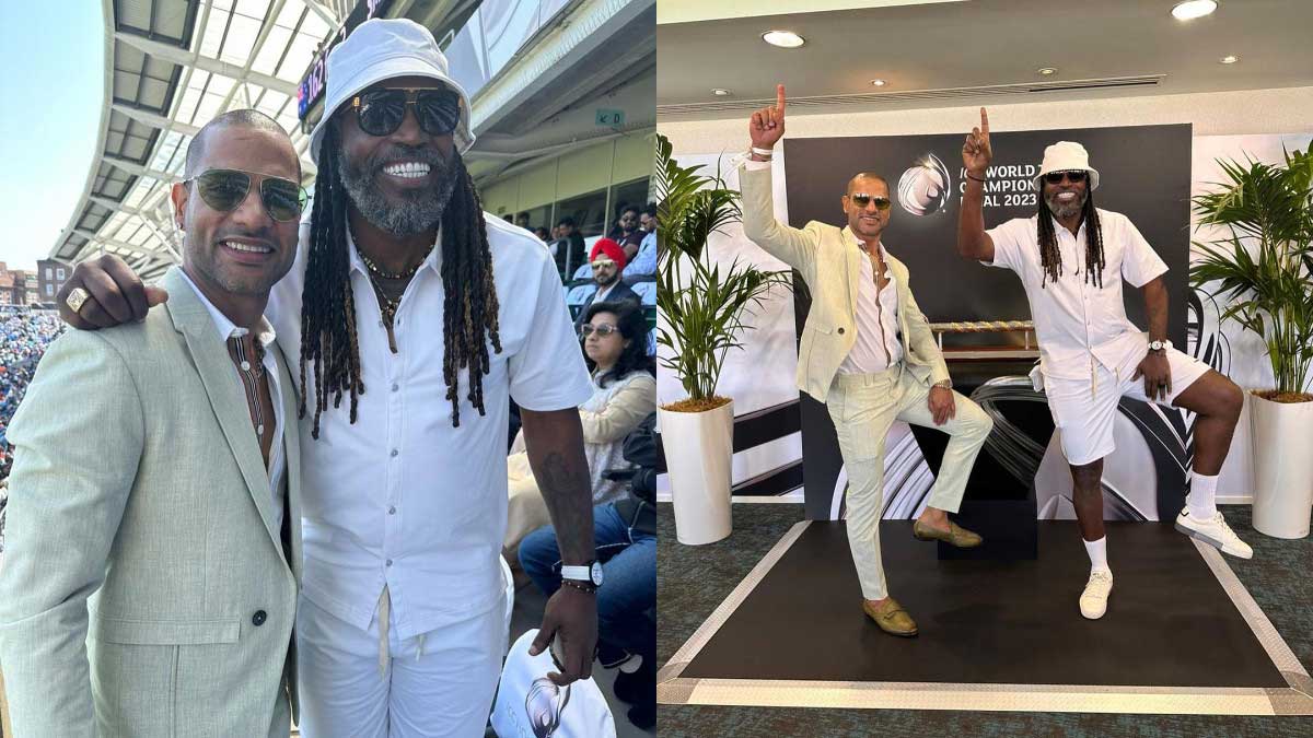 చాలా కీలకమైన ఈ మ్యాచ్ చూసేందుకు భారత స్టార్ ఆటగాడు శిఖర్ ధవన్ కూడా ఓవల్ స్టేడియానికి వచ్చాడు. అతనితోపాటు విండీస్ వీరుడు క్రిస్ గేల్ కూడా కనిపించాడు. వీళ్లిద్దరూ కలిసి టెస్టు క్రికెట్ బెస్ట్ మ్యాచ్ను ఎంజాయ్ చేస్తూ కనిపించారు. ఇలా వీళ్లిద్దరూ కలిసి ఉన్న ఫొటోలు నెట్టింట వైరల్ అవుతున్నాయి. టెస్టు క్రికెట్ ఎంత ఎంటర్టైనింగ్గా ఉంటుందో వీళ్లను చూస్తేనే తెలుస్తోందని ఫ్యాన్స్ అంటున్నారు.