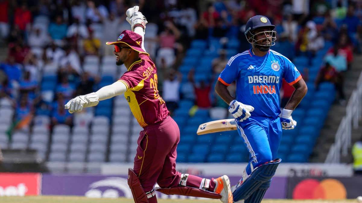 పాండ్యా క్లీన్ బౌల్డ్ అవడంతో మ్యాచ్ గెలిపించాల్సిన బాధ్యత సంజూపై పడింది. అతను నాన్స్ట్రైకర్ ఎండ్లో ఉన్నాడు. దీంతో స్ట్రైకింగ్ తీసుకోవాలని అనుకున్నాడు. ఈ క్రమంలో కైల్ మేయర్స్ అద్భుతమైన ఫీల్డింగ్ చేసి డైరెక్ట్ త్రో విసరడంతో సంజూ అవుటయ్యాడు. దీంతో భారత విజయావకాశాలు బాగా దెబ్బతిన్నాయి.