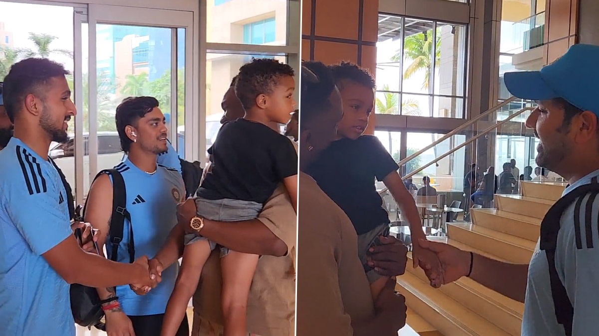 టీమిండియా ఆటగాళ్లు విండీస్తో మూడో వన్డే కోసం ట్రినిడాడ్ చేరుకున్నారు. ఈ క్రమంలో ఆ దేశ మాజీ దిగ్గజం డ్వేన్ బ్రావోను కలిశారు. టీమిండియా సభ్యులకు ట్రినిడాడ్లో బ్రావో ఆహ్వానం పలికాడు. టీం సభ్యులంతా బ్రావోతో నవ్వుతూ మాట్లాడారు. కొందరు వెళ్లి బ్రావో కుమారుడితో కూడా ముచ్చటించారు.