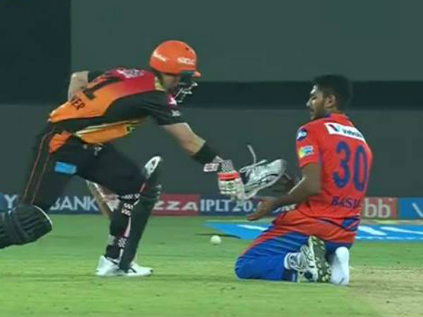 వార్నర్, హెన్రిక్యూస్ల జోడి అద్భుతంగా రాణించి గుజరాత్ బౌలర్లకు ఏమాత్రం ఛాన్స్ ఇవ్వకుండా మ్యాచ్ను ముగించారు. ఐపీఎల్ 10వ సీజన్తో అరంగేట్రం చేసిన గుజరాత్ లయన్స్ బౌలర్ బసిల్ థంపికి డేవిడ్ వార్నర్ మధ్య ఓ ఆసక్తికర సన్నివేశం చోటు చేసుకుంది. ఇన్నింగ్స్ పదో ఓవర్లో ఈ బసిల్ తంపి విసిరిన బంతిని హెన్రిక్యూస్ లాంగాన్ మీదుగా ఆడాడు.