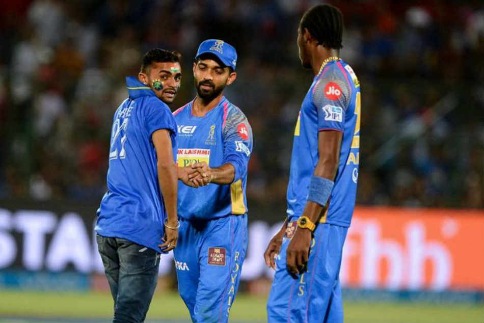 ఈ మ్యాచ్లో తొలుత బ్యాటింగ్ చేసిన రాజస్థాన్ రాయల్స్ 158 పరుగులు చేసింది. అనంతరం రాజస్థాన్ రాయల్స్ నిర్దేశించిన 159 పరుగుల లక్ష్యాన్ని పంజాబ్ ఛేదిస్తున్న క్రమంలో ఓ అభిమాని భద్రతా సిబ్బందిని దాటుకుని వచ్చి రహానే చేయి పట్టుకున్నాడు. దీనిని గమనించిన భద్రతా సిబ్బంది వెంటనే అప్రమత్తమై ఆ యువకుడిని అక్కడి నుంచి తీసుకువెళ్లిపోయారు. అనంతరం మ్యాచ్ని తిరిగి కొనసాగించారు.