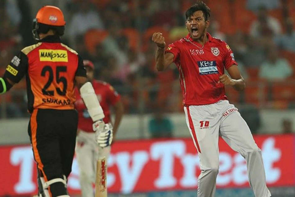 అయితే ఈ మ్యాచ్లో హైదరాబాద్ ఐదు వికెట్లను తానొక్కడే తీయగలిగాడు. పరుగుల వీరుడు ధావన్ను కేవలం 11పరుగులకే పరిమితం చేసి పెవిలియన్కు పంపాడు. అంతకుముందు అంకిత్ రాజ్పుత్ మొదటి ఓవర్ వేశాడు. నాలుగో బంతికే కెప్టెన్ విలియమ్సన్ను ఔట్ చేసి సన్రైజర్స్ను దెబ్బకొట్టాడు. అనంతరం మూడో ఓవర్ కూడా అంకిత్ వేశాడు. రెండో బంతికి మరో ఓపెనర్ శిఖర్ ధావన్ షాట్ ఆడిన బంతి నేరుగా స్లిప్లో ఫీల్డింగ్ చేస్తున్న కరుణ్ నాయర్ చేతిలో పడింది.