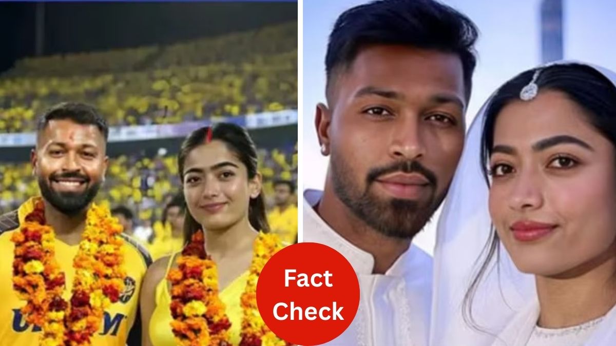 టీమిండియా స్టార్ ఆల్రౌండర్, ముంబై ఇండియన్స్ కెప్టెన్ హార్దిక్ పాండ్యా, సౌతిండియా స్టార్ హీరోయిన్ రష్మిక మందన్న వివాహం చేసుకున్నట్లు సోషల్ మీడియా వేదికగా జోరుగా ప్రచారం జరుగుతోంది. ఇందుకు సంబంధించిన ఫొటోలు కూడా నెట్టింట వైరల్గా మారాయి. రష్మిక, హార్దిక్ పాండ్యా పూల దండలు ధరించి ఉన్న ఫొటోలు నెట్టింట చక్కర్లు కొడుతున్నాయి. అయితే ఇవి ఆర్టిఫిషియల్ ఇంటెలిజెన్స్(ఏఐ) ద్వారా రూపొందించిన ఫొటోలుగా తెలుస్తోంది. వాటిని చూస్తేనే ఈ విషయం స్పష్టంగా అర్థమవుతోంది.