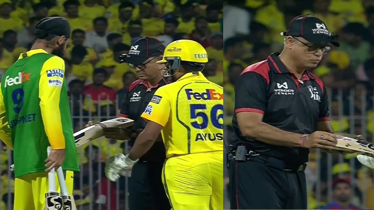ఆయుష్ మాత్రమే తన బ్యాట్ ను ఇవ్వగా.. అంపైర్ దానిని గేజ్ పరికరంలో పెట్టి చూశారు. అది సరిగ్గా లోపలికి వెళ్లకపోవడంతో బ్యాట్ రిజెక్ట్ అయింది. వెంటనే ఆయుష్ మాత్రే మరొక బ్యాట్ తెప్పించుకున్నాడు. విచిత్రమేమిటంటే.. రెండో బ్యాట్ కూడా గేజ్ టెస్టులో ఫెయిల్ అయింది. దీంతో ఆయుష్ మాత్రే కాస్త అయోమయానికి గురయ్యాడు. అయితే కాసేపటి తర్వాత అంపైర్కు తన పొరపాటు తెలిసింది. ఆయన గేజ్ పరికరాన్ని రివర్స్లో పట్టుకున్నానని గ్రహించి దాన్ని తిప్పి చూడగా.. రెండు బ్యాట్లు సులభంగా గేజ్ లోపలికి వెళ్లాయి. అంపైర్ తన తప్పును తెలుసుకుని నవ్వగా.. కామెంటరీ బాక్స్లో ఉన్న ఇయాన్ బిషప్, మైఖేల్ క్లార్క్ కూడా ఈ ఘటనను చూసి నవ్వు ఆపుకోలేకపోయారు.