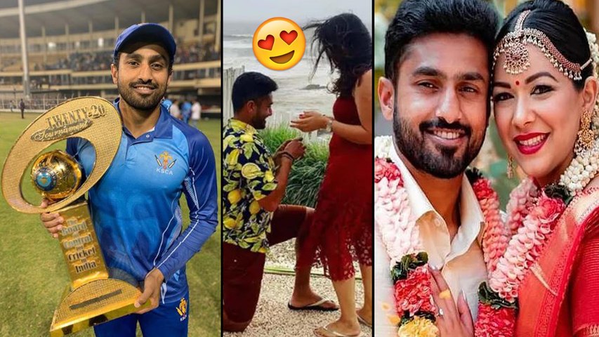 కరుణ్ నాయర్ వివాహానికి సంబంధించిన ఫోటోని జార్ఖండ్ పేస్ బౌలర్ వరుణ్ ఆరోన్ తన ఇనిస్టాగ్రామ్లో పంచుకున్నాడు. ఈ ఫోటోలో కొత్త పెళ్లి దుస్తుల్లో అందంగా మెరిసిపోతున్న జోడీని వీక్షించొచ్చు. గతేడాది జూన్లో వీరిద్దరి ఎంగేజ్ మెంట్ జరిగింది.