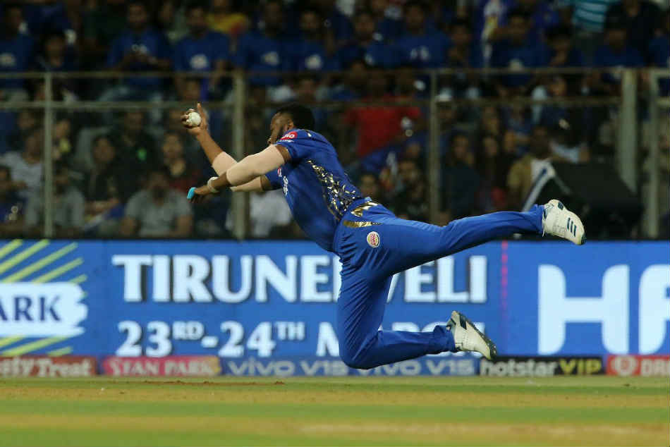 హైదరాబాద్: ఐపీఎల్ 2019 సీజన్లో భాగంగా ముంబైలోని వాంఖడె స్టేడియంలో ఢిల్లీ క్యాపిటల్స్తో జరుగుతున్న మ్యాచ్లో ముంబై ఇండియన్స్ జట్టు స్టార్ ఆల్రౌండర్ కీరన్ పొలార్డ్ ఒంటి చేత్తో క్యాచ్ అందుకుని అభిమానులను ఆశ్చర్యానికి గురి చేశాడు. వివరాల్లోకి వెళితే... ఆదివారం రాత్రి 8 గంటలకు ముంబై-ఢిల్లీ జట్ల మధ్య మ్యాచ్ జరుగుతుంది.