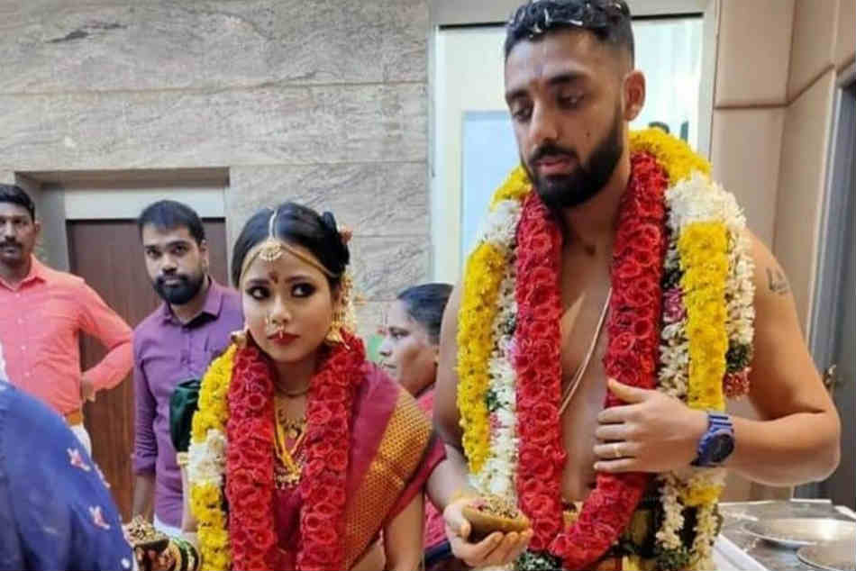 చెన్నై: కోల్కతా నైట్రైడర్స్ మిస్టరీ స్పిన్నర్ వరుణ్ చక్రవర్తి ఓ ఇంటివాడయ్యాడు. చాలా కాలంగా నేహా ఖెడెకర్తో ప్రేమాయణం నడుపుతున్న వరుణ్ చక్రవర్తి తాజాగా పెద్దల సమక్షంలో ఆమెను వివాహం చేసుకున్నాడు. వీరి పెళ్లికి సంబంధించిన ఫొటోలు, వీడియోలను కోల్కతా నైట్రైడర్స్ ఫ్రాంఛైజీ సోషల్ మీడియా వేదికగా పంచుకుంది. నూతన దంపతులకు శుభాకాంక్షలు తెలియజేసింది. ఇక కేకేఆర్ పంచుకున్న వీడియోలో రిసెప్షన్ వేదికపై వరుణ్ చక్రవర్తి బంతి విసరగా.. అతని సతీమణి నేహా బ్యాటింగ్ చేసింది. ఈ వీడియోకు 'వివాహ బంధంతో భార్య, భర్తలుగా కొత్త జీవితాన్ని ప్రారంభిస్తున్న వరుణ్ చక్రవర్తి, నేహా ఖెడెకర్కు అభినందనలు.'అని క్యాప్షన్గా పేర్కొంది. ప్రస్తుతం ఈ వీడియో నెట్టింట హల్చల్ చేస్తోంది.