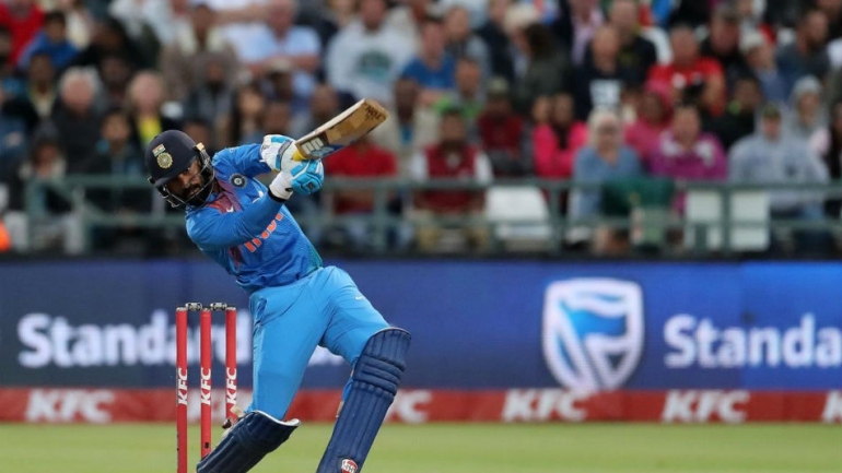ఆఖరి బంతికి భారత్ విజాయానికి ఐదు పరుగులు అవసరమైన దశలో దినేశ్ కార్తీక్ (8 బంతుల్లో 27) సిక్సర్ బాది భారత్కు విజయాన్ని అందించాడు. 167 పరుగుల లక్ష్యంతో పోరాడిన భారత్కు రోహిత్ శర్మ 42 బంతుల్లో 56పరుగులు, శిఖర్ ధావన్ (10) మెరుపు ఆరంభాన్నిచ్చారు. కానీ వెనువెంటనే ధావన్, రైనా (0) అవుటవడం స్కోరు బోర్డుపై ప్రభావం చూపింది.