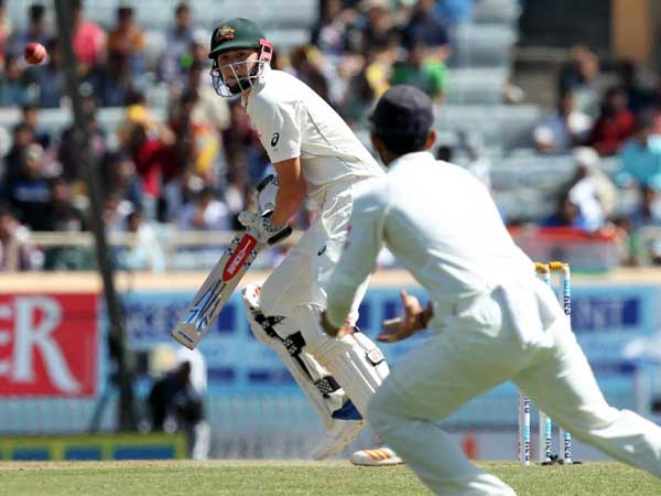23వ ఓవర్లో వికెట్ కోల్పోయిన ఆసీస్ వెంటనే 26వ ఓవర్లో మరో కీలక వికెట్ను కోల్పోయింది. 26వ ఓవర్లో అశ్విన్ వేసిన తొలి బంతి మార్ష్ బ్యాట్ను తాకి గాల్లోకి లేవడంతో పూజారా ఒంటిచేత్తో ఈ క్యాచ్ను అందుకున్నాడు. భారత ఆటగాళ్లు అప్పీల్ చేయగా అంపైర్ నాటౌట్గా ప్రకటించాడు. కోహ్లీసేన రివ్యూని ఆశ్రయించింది. రివ్యూలో అశ్విన్ వేసిన బంతి బ్యాట్ని తాకినట్లు తేలడంతో మార్ష్ను ఔట్గా ప్రకటించారు.