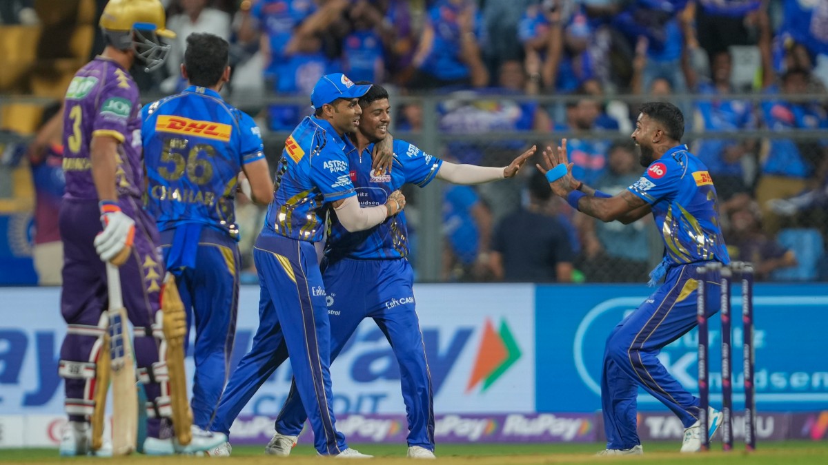 అంగ్క్రిష్ రఘు వంశీ, రింకూ సింగ్ దూకుడుగా ఆడే ప్రయత్నం చేసినా ముంబై బౌలర్లు అవకాశం ఇవ్వలేదు. క్రీజులో సెట్ అయిన రఘువంశీని హార్దిక్ ఔట్ చేయగా.. రింకూ సింగ్ను అశ్వని కుమార్ పెవిలియన్ చేర్చాడు. ఆ వెంటనే ఇంపాక్ట్ ప్లేయర్ మనీష్ పాండే(19)తో పాటు ఆండ్రీ రస్సెల్(5)ను క్లీన్ బౌల్డ్ ఔట్ చేసిన అశ్వని.. కేకేఆర్ పతనాన్ని శాసించాడు. హర్షిత్ రాణాను విజ్ఞేష్ పుతుర్ ఔట్ చేయగా.. రమణ్దీప్(22) సింగ్ను మిచెల్ సాంట్నర్ పెవిలియన్ చేర్చి కేకేఆర్ ఇన్నింగ్స్కు తెరదించాడు. అశ్వని కుమార్కు మరో ఓవర్ బౌలింగ్ ఇవ్వకుండా హార్దిక్ పాండ్యా.. అతని ఐదు వికెట్ల ఘనతను అడ్డుకున్నాడు.