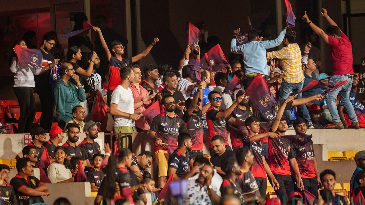 ఐపీఎల్ 2025 సీజన్లో భాగంగా ముంబై ఇండియన్స్, రాయల్ ఛాలెంజర్స్ బెంగళూరు(ఆర్సీబీ) మధ్య వాంఖడే మైదానం వేదికగా జరుగుతున్న మ్యాచ్కు అభిమానులు పోటెత్తారు. భారీ సంఖ్యలో ప్రేక్షకులు ఈ మ్యాచ్కు హాజరయ్యారు. అయితే ముంబై ఇండియన్స్ హోమ్ గ్రౌండ్ అయిన ఈ మ్యాచ్కు ఆర్సీబీ ఫ్యాన్స్ కూడా భారీ సంఖ్యలో హాజరయ్యారు. ఆర్సీబీ ఎరుపు జెర్సీలు ధరించి మరి ఆ జట్టుకు అండగా నిలిచారు. దాంతో ముంబైలోని వాంఖడే మైదానం ఆర్సీబీ జెర్సీలతో ఎరుపెక్కింది. ఆర్సీబీ నినాదాలతో దద్దరిల్లింది. ఈ మ్యాచ్లో ఆర్సీబీ స్టార్ బ్యాటర్ విరాట్ కోహ్లీ హాఫ్ సెంచరీతో చెలరేగడంతో అభిమానుల సంతోషం రెట్టింపు అయ్యింది.