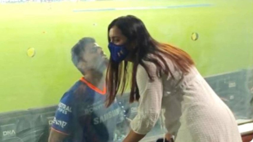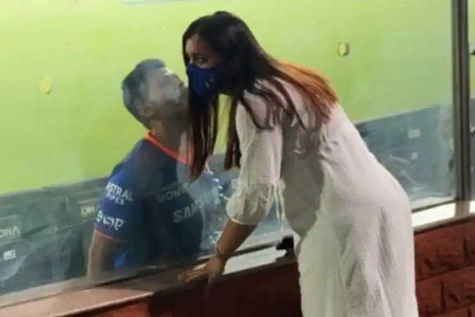 మ్యాచ్ ముగిసిన అనంతరం స్టాండ్స్లో భార్య దేవిషా షెట్టితో దొరికాడు.. సూర్యకుమార్ యాదవ్. తన భార్యకు హాట్ హాట్గా ఓ కిస్ ఇస్తూ కెమెరా కంటికి చిక్కాడు. అద్దానికి అటు వైపున ఉన్న దేవిషా షెట్టి చిక్స్ మీద ముద్దు పెడుతూ కనిపించాడు. దేవిషా షెట్టి ఆ గ్లాస్కు తన చెంపను ఆనించి నిల్చోగా.. అటు వైపున్న సూర్యకుమార్ యాదవ్ కిస్ చేయడం కనిపించింది. అక్కడున్న ఫొటోగ్రాఫర్లు ఆ సీన్ను క్లిక్మనిపించారు.