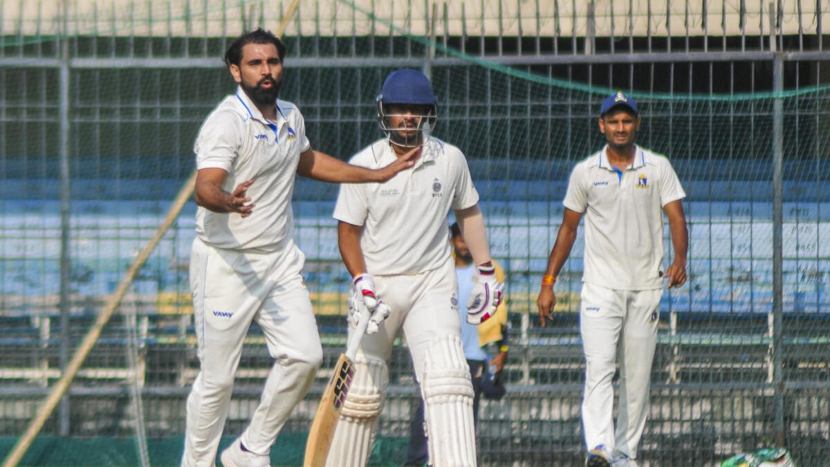 ఈ మ్యాచ్లో 19 ఓవర్లు బౌలింగ్ చేసి 4 మెయిడిన్ ఓవర్లు వేసిన షమీ.. 54 పరుగులిచ్చి 4 వికెట్లు ఖాతాలో వేసుకున్నాడు. ఈ నాలుగు వికెట్లలో ముగ్గురు బ్యాటర్లను షమీ క్లీన్ బౌల్డ్ చేయడం విశేషం. బుధవారం ప్రారంభమైన ఈ మ్యాచ్లో ముందుగా బ్యాటింగ్ చేసిన బెంగాల్ తొలి ఇన్నింగ్స్లో 228 పరుగులకు కుప్పకూలింది.