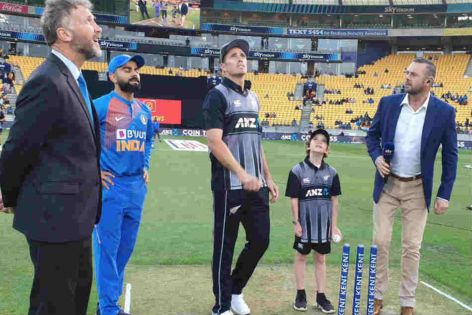 వెల్లింగ్టన్: ఐదు టీ20 మ్యాచ్ల సిరీస్లో భాగంగా వెల్లింగ్టన్లోని వెస్ట్పాక్ స్టేడియంలో న్యూజిలాండ్, భారత్ జట్ల మధ్య మరికొద్దిసేపట్లో నాలుగో టీ20 మ్యాచ్ జరగనుంది. ఈ మ్యాచ్లో టాస్ గెలిచిన న్యూజిలాండ్ కెప్టెన్ టీమ్ సౌథీ ఫీల్డింగ్ ఎంచుకున్నాడు. నాలుగో టీ20 మ్యాచ్లో కివీస్ రెండు మార్పుతో బరిలోకి దిగుతోంది. గాయపడిన కేన్ విలియమ్సన్ బదులుగా డారిల్ మిచెల్ జట్టులోకి వచ్చాడు. ఇక ఆల్రౌండర్ గ్రాండ్హోమ్ స్థానంలో టామ్ బ్రూస్ ఆడుతున్నాడు.