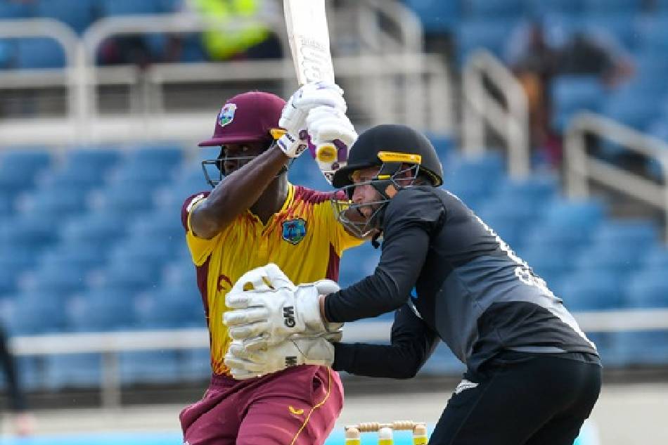 లాథమ్ మొదట బౌలింగ్ ఎంచుకోగా.. వెస్టిండీస్కు బ్యాటింగ్లో అదిరిపోయే ఆరంభం దక్కింది. షాయ్ హోప్, కైల్ మేయర్స్ 173పరుగుల ఓపెనింగ్ భాగస్వామ్యాన్ని అందించారు. కైల్ మేయర్స్ (105 పరుగులు) సెంచరీ చేయగా హోప్ (51) హాఫ్ సెంచరీతో రాణించాడు. ఇక నికోలస్ పూరన్ (55బంతుల్లో 91పరుగులు 4ఫోర్లు, 9సిక్సర్లు) బాది స్కోరుబోర్డును ఓ రేంజులో ముందుకు తీసుకెళ్లాడు. చివర్లో అల్జారీ జోసెఫ్ (20పరుగులు) దాటిగా ఆడడంతో విండీస్ 300పరుగులు దాటింది. ఇక ఇన్నింగ్స్ ముగిసేసరికి 8వికెట్లు కోల్పోయి 301పరుగులు చేసింది. న్యూజిలాండ్ బౌలర్లలో బౌల్ట్ 3, సాంట్నర్ 2, సౌథీ, ఫెర్గుసన్, నీషమ్ తలా ఓ వికెట్ తీశారు.
