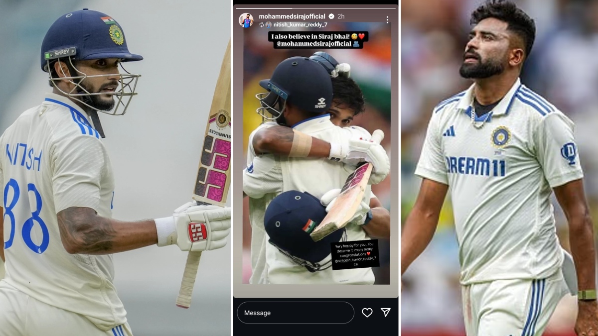 టీమిండియా స్టార్ పేసర్, తెలంగాణ డీఎస్పీ మహమ్మద్ సిరాజ్కు పేస్ ఆల్రౌండర్, మెల్బోర్న్ సెంచరీ హీరో నితీష్ కుమార్ రెడ్డి ధన్యవాదాలు తెలిపాడు. సెంచరీకి అండగా నిలిచిందుకు ఇన్స్టా వేదికగా స్పెషల్ థ్యాంక్స్ చెప్పాడు.