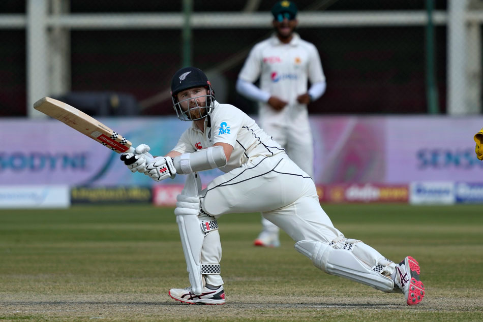 కరాచీ: పాకిస్థాన్-న్యూజిలాండ్ మధ్య జరుగుతున్న తొలి టెస్ట్ డ్రా దిశగా సాగుతోంది. 440/6 ఓవర్ నైట్ స్కోర్తో నాలుగో రోజు తొలి ఇన్నింగ్స్ను కొనసాగించిన న్యూజిలాండ్ తొలి ఇన్నింగ్స్ను 612/9 భారీ స్కోర్ వద్ద డిక్లేర్ ఇచ్చింది. కేన్ విలియమ్సన్(395 బంతుల్లో 21 ఫోర్లు, సిక్స్తో 200 నాటౌట్) డబుల్ సెంచరీ సాధించగా.. టామ్ లాథమ్(113) సెంచరీ బాదాడు. ఇష్ సోదీ(65) హాఫ్ సెంచరీతో రాణించాడు. పాక్ బౌలర్లలో అబ్రర్ అహ్మద్ 5 వికెట్లు తీయగా.. నౌమన్ అలీకి మూడు వికెట్లు దక్కాయి. ఇక న్యూజిలాండ్కు 174 పరుగుల తొలి ఇన్నింగ్స్ ఆధిక్యం దక్కింది.