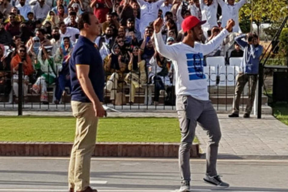 జనాలతో పాటూ గ్యాలరీలో కూర్చొన్నాడు. కొద్దిసేపటికి ఇరు దేశాల సైన్యాలు... అక్కడి గేట్లను తీసి కవాతు చేయడం ప్రారంభించాయి. కవాతు మధ్యలో హసన్ అలీ గేట్లవైపు పరుగు తీశాడు. అక్కడే నిలబడి సైన్యాన్ని, అక్కడే గ్యాలరీలో ఉన్న భారతీయుల్ని రెచ్చగొట్టేలా ప్రవర్తించాడు. తన చేష్టలతో పిచ్చి, పిచ్చి వేషాలు వేస్తూ రెచ్చిపోయాడు. ఇంత జరుగుతున్నా ఎవరూ కనీసం ఆపే ప్రయత్నం కూడా చేయలేదు. ఈ వ్యవహరాన్ని భారత సైన్యం సీరియస్గా తీసుకుంది.