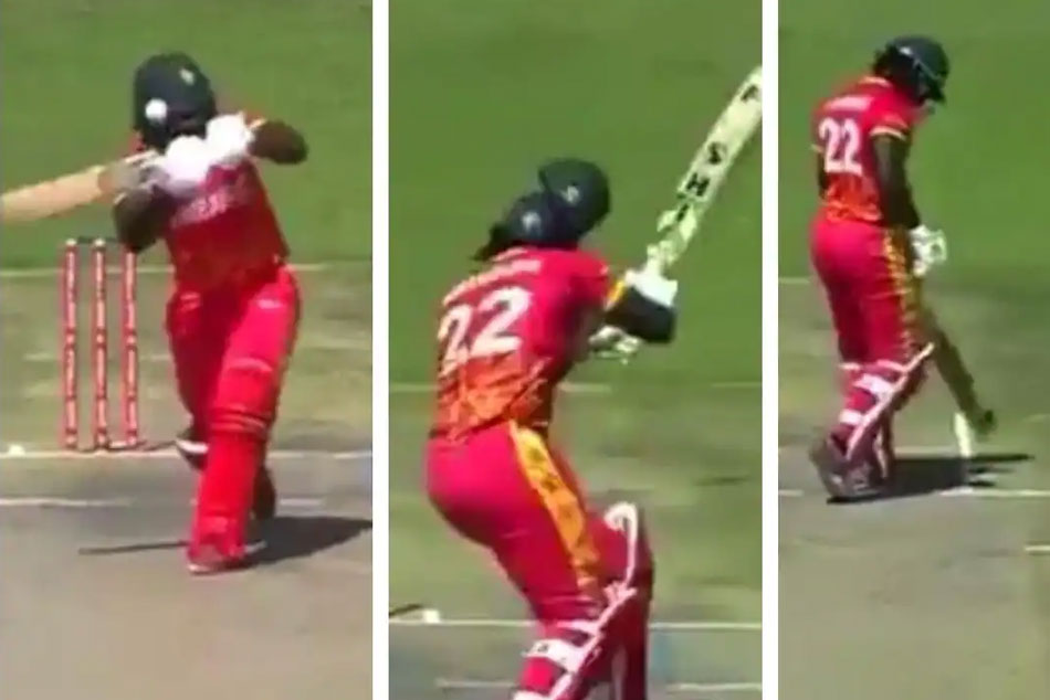 హరారే వేదికగా పాకిస్థాన్-జింబాబ్వే జట్ల మధ్య రెండో టీ20 మ్యాచ్ జరిగింది. పాకిస్థాన్ తరఫున అరంగేట్రం చేసిన పేస్ బౌలర్ అర్షద్ ఇక్బాల్ వేసిన రెండో ఓవర్లో భాగంగా ఓ బంతిని జింబాబ్వే బ్యాట్స్మన్ తినాషే కామున్హుకామ్వే షాట్ ఆడబోగా అది అతని హెల్మెట్కు తగిలింది. హెల్మెట్కు తగలడమే ఆసల్యం.. పైన ఉన్న లేయర్ ఒక్కసారిగా ఊడిపోయింది.