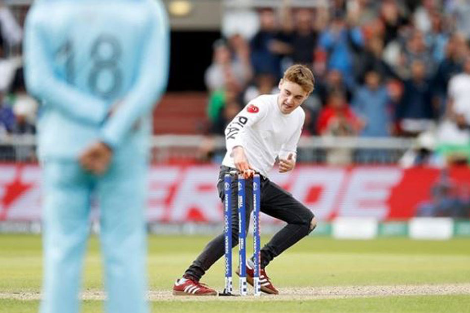 మాంఛెస్టర్: ప్రపంచకప్లో భాగంగా ఇంగ్లండ్, ఆఫ్ఘనిస్తాన్ జట్ల మధ్య మాంఛెస్టర్లోని ఓల్డ్ ట్రాఫొర్డ్ స్టేడియంలో మంగళవారం జరిగిన మ్యాచ్ సందర్భంగా అనూహ్య ఘటన చోటు చేసుకుంది. స్టేడియం భద్రతా వైఫల్యాన్ని వేలెత్తి చూపించే ఘటన ఇది. మ్యాచ్ రంజుగా కొనసాగుతున్న సమయంలో ఓ యువకుడు పిచ్పైకి దూసుకొచ్చాడు. బెయిల్స్ను కింద పడేసి మరీ వచ్చినంత వేగంగా వెనక్కి వెళ్లిపోయాడు. ఫలితంగా- కొన్ని నిమిషాల పాటు మ్యాచ్ అర్ధాంతరంగా నిలిచిపోయింది.
