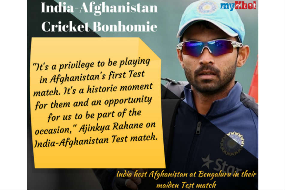 'అఫ్గానిస్థాన్ తొలి టెస్టులో ఆడబోతుండటాన్ని గొప్ప గౌరవంగా భావిస్తున్నా. ఇది ఆ జట్టుకి ఓ చారిత్రక ఘటనకాగా.. అందులో భారత జట్టు భాగస్వామ్యం కావడం ఆనందంగా ఉంది. అఫ్గానిస్థాన్ జట్టులో చాలా మంది ప్రతిభ ఉన్న ఆటగాళ్లున్నారు. పరిమిత ఓవర్ల క్రికెట్లో తామేంటో ఇప్పటికే వారు నిరూపించుకున్నారు. కచ్చితంగా టెస్టు క్రికెట్లో కూడా ఆ స్థాయి ప్రదర్శనని కనబర్చేందుకు ప్రయత్నిస్తారు' అని అజింక్య రహానె వెల్లడించాడు.