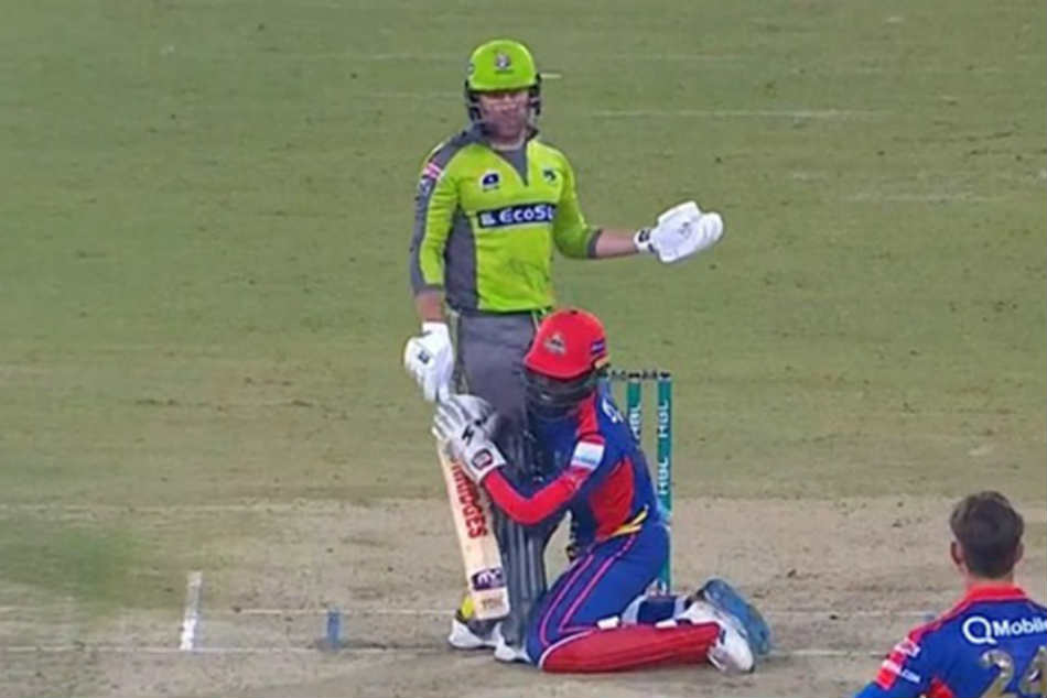ప్రస్తుతం పాక్ గడ్డపై పాకిస్తాన్ సూపర్ లీగ్ (పీఎస్ఎల్)జరుగుతున్న విషయం తెలిసిందే. లీగ్లో భాగంగా లాహోర్ క్వాలండర్స్-కరాచీ కింగ్స్ జట్ల మధ్య మ్యాచ్ జరిగింది. లాహోర్ జట్టు ఛేజింగ్ చేస్తోంది. కరాచీ కింగ్స్ బౌలర్ డెల్ పోర్ట్ వేసిన 10 ఓవర్ ఐదో బంతిని బ్యాట్స్మన్ బెన్ డంక్ రివర్స్ స్వీప్ ఆడాడు. బంతి కాస్తా ఎడ్జ్ తీసుకుని అక్కడే పైకి లేచింది. అయితే కరాచీ వికెట్ కీపర్ చాడ్విక్ వాల్టన్ బంతిని అందుకోవడంలో తడబడ్డాడు.
