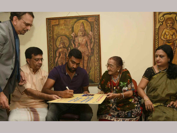 'నా కళ్లను సంతోషంగా దానం చేస్తున్నా. మరి మీరో?' అంటూ రవిచంద్రన్ అశ్విన్ అంగీకార పత్రంలో ఓ స్లోగన్ రాశాడు. ఈ కార్యక్రమంలో రాజన్ ఐకేర్ హాస్పిటల్ చైర్మన డాక్టర్ మోహనరాజన్, తమిళ సినీ హాస్యనటుడు వైజీ మహేంద్రన్, శ్రీమతి వైజీపి తదితరులు పాల్గొన్నారు.