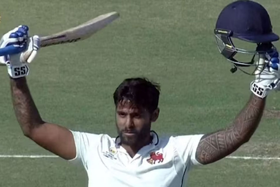 తనదైన ట్రేడ్ మార్క్ షాట్లతో మైదానం నలువైపులా బంతిని బాదిన సూర్య.. ఒకే ఓవర్లో వరుసగా 4 ఫోర్లు బాది ఔరా అనిపించాడు. మూడేళ్ల తర్వాత టెస్టు మ్యాచ్ ఫార్మాట్ ఆడుతున్న సూర్య.. ఆడిన తొలి మ్యాచ్లోనే అదరగొట్టి తన రీఎంట్రీని ఘనంగా చాటుకున్నాడు. అయితే, దాటిగా ఆడిన సూర్య సెంచరీ మాత్రం పూర్తి చేయలేకపోయాడు. 90 పరుగుల వ్యక్తిగత స్కోరు వద్ద శశాంక్ మల్హోత్రా అతన్ని ఔట్ చేశాడు.