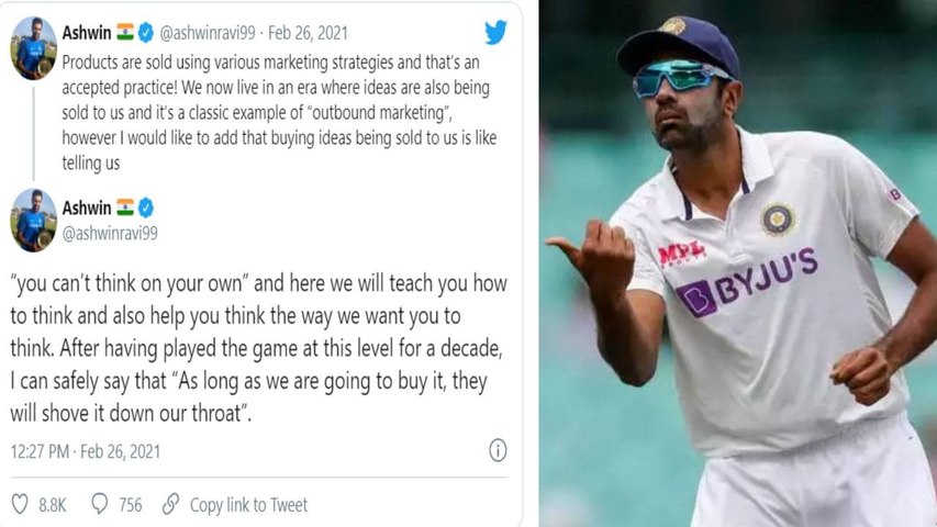 'వివిధ మార్కెటింగ్ వ్యూహాల కారణంగానే ఉత్పత్తులు అమ్ముడవుతాయి. పైగా ఇది అమోదించబడిన పద్దతి. మనం ఇప్పుడు ఆలోచనలను కూడా అమ్ముతున్న యుగంలో జీవిస్తున్నాం. ఆలోచలను అమ్మడం ఔట్బౌండ్ మార్కెటింగ్కు సరైన ఉదాహరణ. అయితే మనకు అమ్మిన ఆలోచనలను కొనడం అంటే మనకు చెప్పడం లాంటిదేనని నా అభిప్రాయం'అని ట్వీట్ చేశాడు. మరో రెండు ట్వీట్లను కూడా ఈ తరహాలోనే రాసుకొచ్చాడు. అయితే ఈ ట్వీట్స్ నేరుగా చదివితే ఎవరికి అర్థం కావడం లేదు. కానీ అశ్విన్ మాజీ క్రికెటర్లను ఉద్దేశించే పరోక్ష వ్యాఖ్యలు చేశాడు. ఓ అభిమాని ఈ ట్వీట్ వెనుకున్న అర్థాన్ని వివరించాడు.