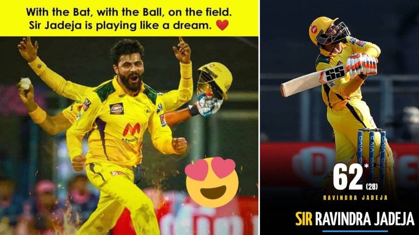 ముంబై: రాయల్ చాలెంజర్స్ బెంగళూరుతో ఆదివారం జరిగిన మ్యాచ్లో చెన్నై సూపర్ కింగ్స్ స్టార్ ఆల్రౌండర్ రవీంద్ర జడేజా ఆల్రౌండ్ ప్రదర్శనతో అదరగొట్టాడు. బెంగళూరు పేసర్ హర్షల్ పటేల్ వేసిన ఇన్నింగ్స్ ఆఖరి ఓవర్లో 'సర్' జడేజా 5 సిక్సర్లు, ఒక ఫోర్, రెండు పరుగులు సాధించి మొత్తం (ఒక నోబాల్) 37 పరుగులు పిండుకున్నాడు. జడేజా కేవలం 28 బంతుల్లో 62 పరుగులు చేశాడు. అందులో 4 ఫోర్లు, 5 సిక్సర్లు ఉన్నాయి. అంతేకాదు బౌలింగ్ చేసి మూడు వికెట్లు (3/13) కూడా పడగొట్టాడు. ఫీల్డింగ్లోనూ కీలకమైన క్రిస్టియాన్ని డైరెక్ట్ త్రో విసిరి చెన్నై విజయంలో కీలక పాత్ర పోషించాడు.
