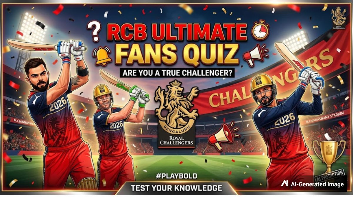 అయితే ఆర్సీబీ ఫ్రాంచైజీకి ప్రత్యేకమైన ఫ్యాన్ బేస్ ఉంది. 17 సీజన్లుగా ఆర్సీబీ ఒక్క టైటిల్ గెలవలేకపోయినా.. పేలవ ప్రదర్శన కనబర్చినా అభిమానుల సంఖ్య పెరిగిందే తప్పా తగ్గలేదు. ఆర్సీబీ కష్ట సుఖాల్లో అండగా నిలిచిన డై హార్డ్ ఫ్యాన్స్కు ఐపీఎల్ 2026 సందర్భంగా 'ఆర్సీబీ అల్టిమేట్ క్విజ్ పార్ట్ 1' అందుబాటులో ఉంది. పది ప్రశ్నలు, అత్యంత అవగాహన కలిగిన అభిమానిగా మిమ్మల్ని మీరు నిరూపించుకోవడానికి ఇదొక గొప్ప అవకాశం. ఇంకెందుకు మొదలు పెట్టండి. ఆర్సీబీపై మీకున్న అభిమానాన్ని చాటుకోండి.