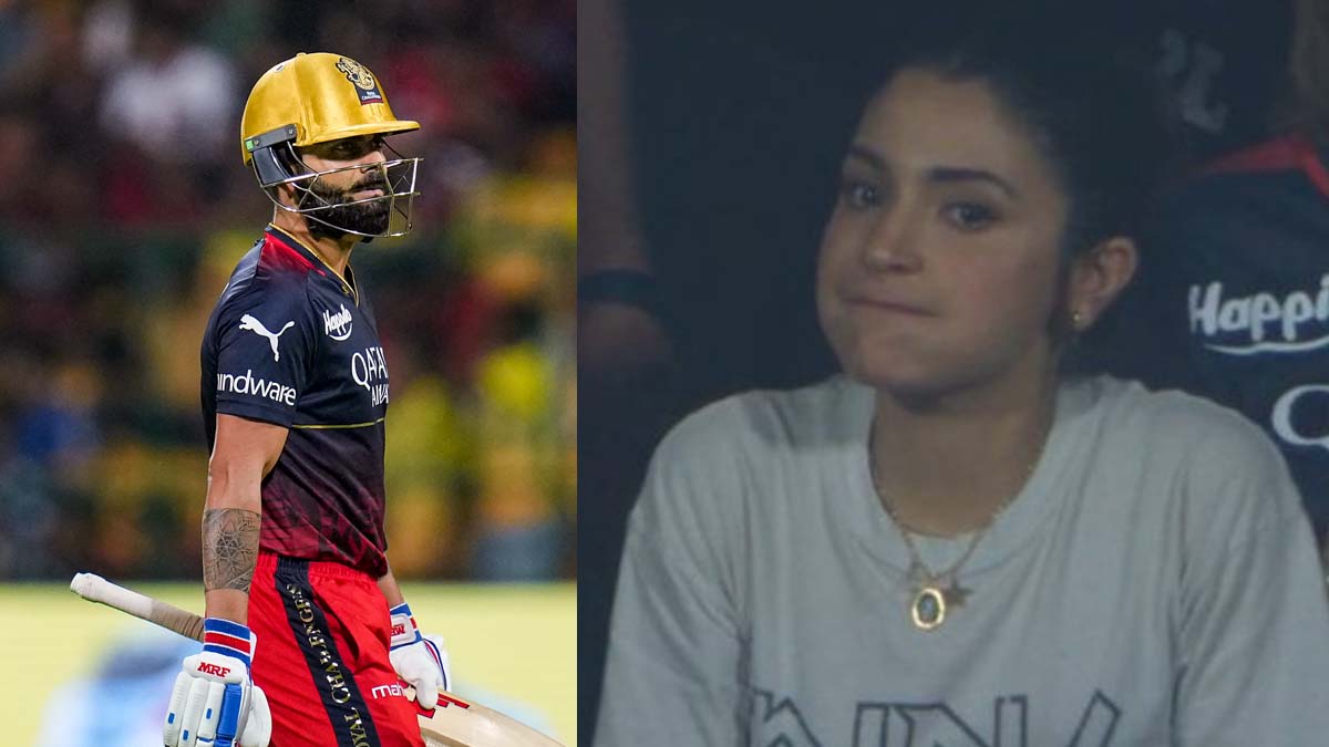 ఆకాశ్ సింగ్ వేసిన తొలి ఓవర్ నాలుగో బంతిని కోహ్లీ భారీ షాట్ ఆడే ప్రయత్నం చేయగా.. ఇన్సైడ్ ఎడ్జ్ అయిన బంతి అతన్ని కాళ్లను తాకుతూ వికెట్లను గీరాటేసింది. దాంతో కోహ్లీ నిరాశగా పెవిలియన్ చేరాడు. విరాట్ కోహ్లీని దురదృష్టం వెంటాడటంతో అతని సతీమణి, బాలీవుడ్ హీరోయిన్ అనుష్క శర్మ బిత్తరపోయింది. అలానే చూస్తూ.. తన బాధను ఎక్స్ప్రెస్ చేసింది. ఇందుకు సంబంధించిన వీడియో నెట్టింట వైరల్గా మారింది.