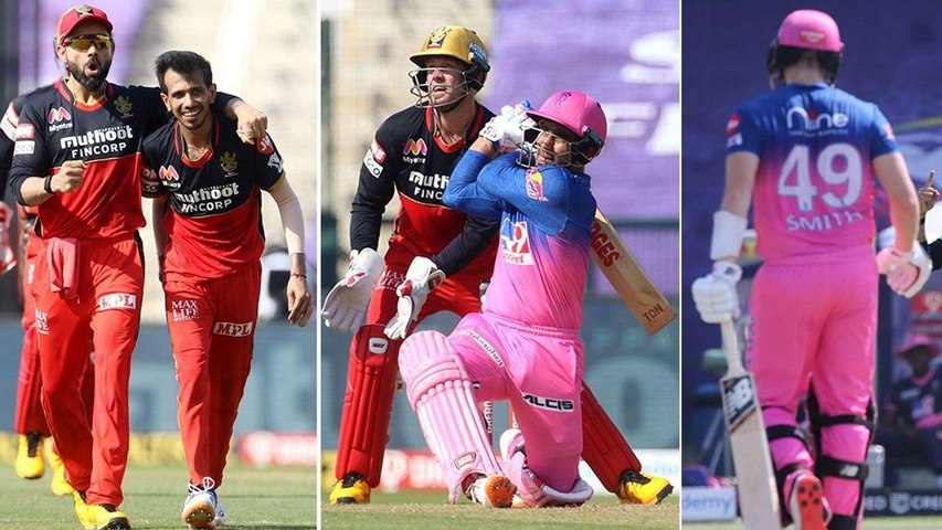 టాస్ గెలిచి బ్యాటింగ్కు దిగిన రాజస్థాన్ రాయల్స్కు ఆదిలోనే వికెట్లు చేజార్చుకుని కష్టాల్లో పడింది. కెప్టెన్ స్టీవ్ స్మిత్ (5), ఓపెనర్ జోస్ బట్లర్ (22), యువ ఆటగాడు సంజూ శాంసన్ (4)విఫలమయ్యారు.పేసర్ ఇసురు ఉడానా వేసిన మూడో ఓవర్లో స్మిత్ బౌల్డయ్యాడు. నవదీప్ సైనీ వేసిన ఆ మరుసటి ఓవర్లోనే జోస్ బట్లర్ (22) దేవదత్ పడిక్కల్కు క్యాచ్ ఇచ్చి వెనుదిరిగాడు. స్పిన్నర్ యుజ్వేంద్ర చాహల్ వచ్చీ రావడంతోనే కీలక వికెట్ పడగొట్టాడు.