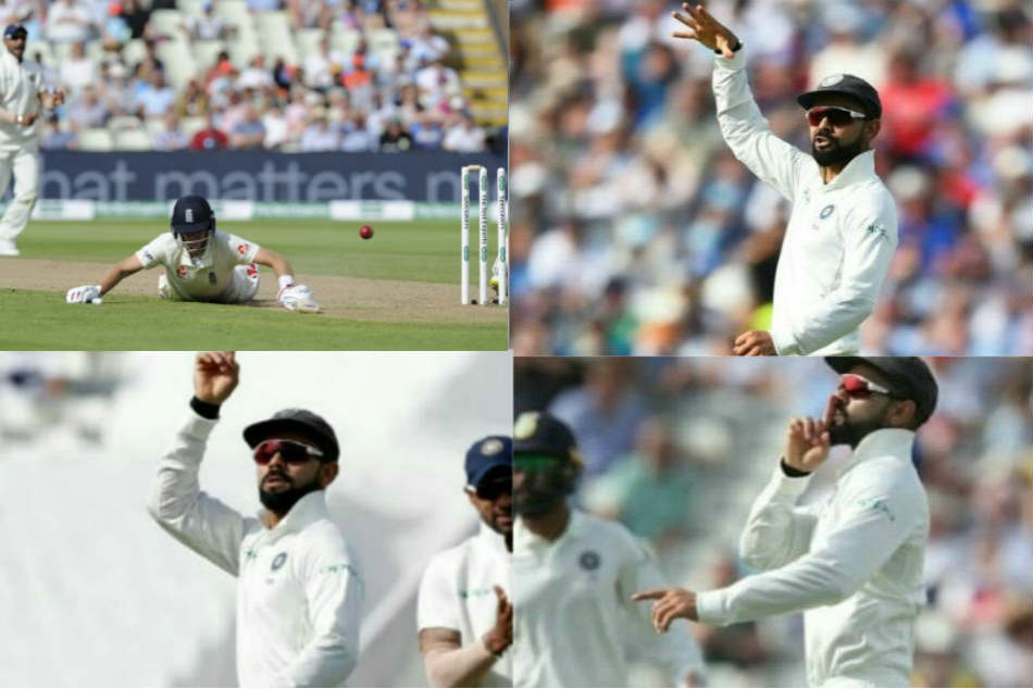 కానీ.. వేగంగా బంతిని అందుకున్న కోహ్లి.. పడిపోయే పరిస్థితిలోనూ గురిచూసి నాన్స్ట్రైక్ ఎండ్లోని వికెట్లపైకి బంతిని విసిరాడు. అక్కడే ఉన్న బౌలర్ అశ్విన్ తొలుత బంతిని అందుకునేందుకు ప్రయత్నించి.. అది నేరుగా వికెట్ల వైపు వెళ్తుండటాన్ని గమనించి చేతులను వెనక్కి తీశాడు. దీంతో.. వేగంగా వెళ్లిన బంతి వికెట్లను గీరాటేయగా.. క్రీజులోకి వచ్చేందుకు జో రూట్ డైవ్ చేసినా లాభం లేకపోయింది.