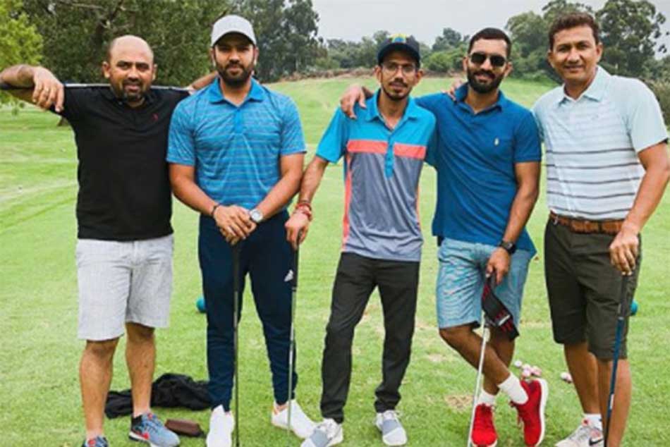అయితే జట్టులోని ఆటగాళ్లంతా దీని డుమ్మా కొట్టి సమీపంలోని తమకు నచ్చిన ప్రదేశాలను చూసేందుకు వెళ్లారు. ఈ క్రమంలో భారత ఓపెనర్ రోహిత్ శర్మ, వికెట్ కీపర్ దినేశ్ కార్తిక్, చైనామన్ స్పిన్నర్ చాహల్, బ్యాటింగ్ కోచ్ సంజయ్ బంగర్ కలిసి గోల్ఫ్ క్లబ్లో సరదాగా గోల్ఫ్ ఆడారు.