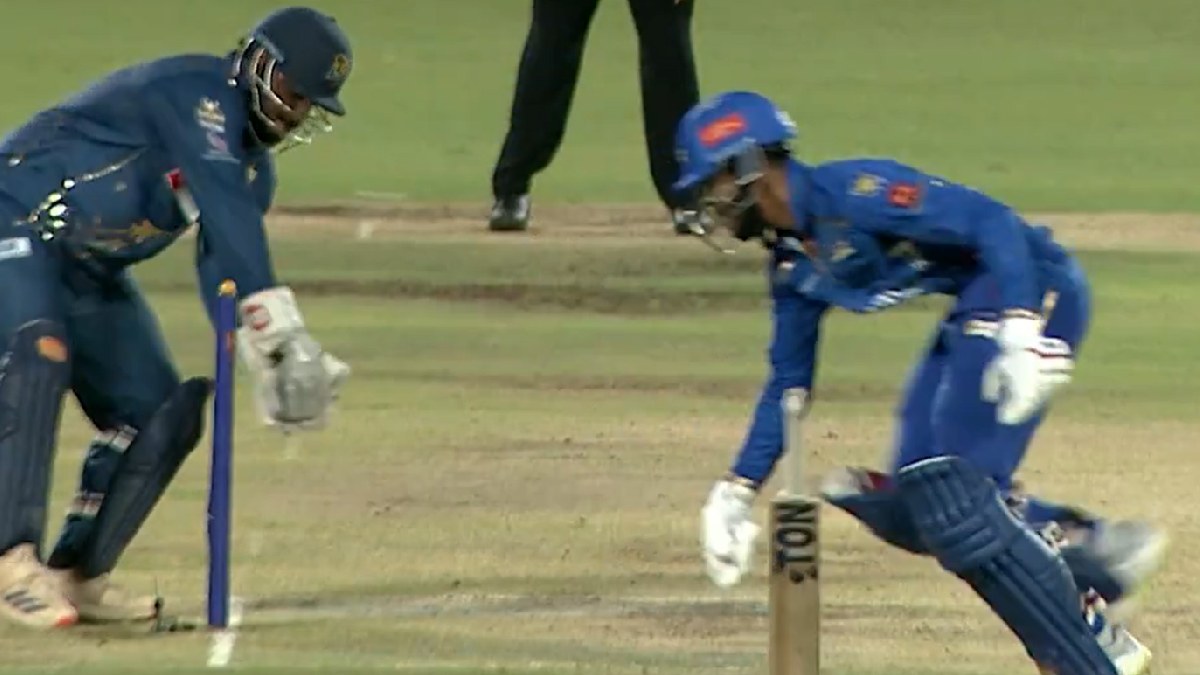అప్పటికే బంతిని అందుకున్న వికెట్ కీపర్ స్టంప్స్ను కొట్టేసాడు. దాంతో రుతురాజ్ గైక్వాడ్ రనౌట్గా వెనుదిరిగాల్సి వచ్చింది. చేతిలో నుంచి బ్యాట్ జారకుండా ఉంటే రుతురాజ్ ఔటయ్యేవాడు కాదు. ఈ మ్యాచ్లో రుతురాజ్ టీమ్ పుణేరి బప్పా 4 వికెట్ల తేడాతో ఓటమిపాలైంది. ముందుగా బ్యాటింగ్ చేసిన పుణేరి బప్పా 19.5 ఓవర్లలో 144 పరుగులకు కుప్పకూలింది. అనంతరం రత్నగిరి జెట్స్ 19.4 ఓవర్లలో 6 వికెట్లు కోల్పోయి విజయాన్నందుకుంది.