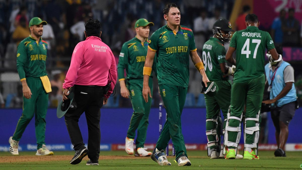 SA vs BAN: వన్డే ప్రపంచకప్ 2023లో సౌతాఫ్రికా మరో విజయాన్ని అందుకుంది. బంగ్లాదేశ్తో మంగళవారం జరిగిన మ్యాచ్లో సమష్టిగా రాణించిన సౌతాఫ్రికా 149 పరుగుల తేడాతో గెలుపొందింది. ముందుగా విధ్వంసకర బ్యాటింగ్తో చెలరేగిన సఫారీ టీమ్.. ఆ తర్వాత బౌలింగ్లో రఫ్ఫాడించింది. ఈ విజయంతో సౌతాఫ్రికా పాయింట్స్ టేబుల్లో రెండో స్థానంలో నిలిచింది.