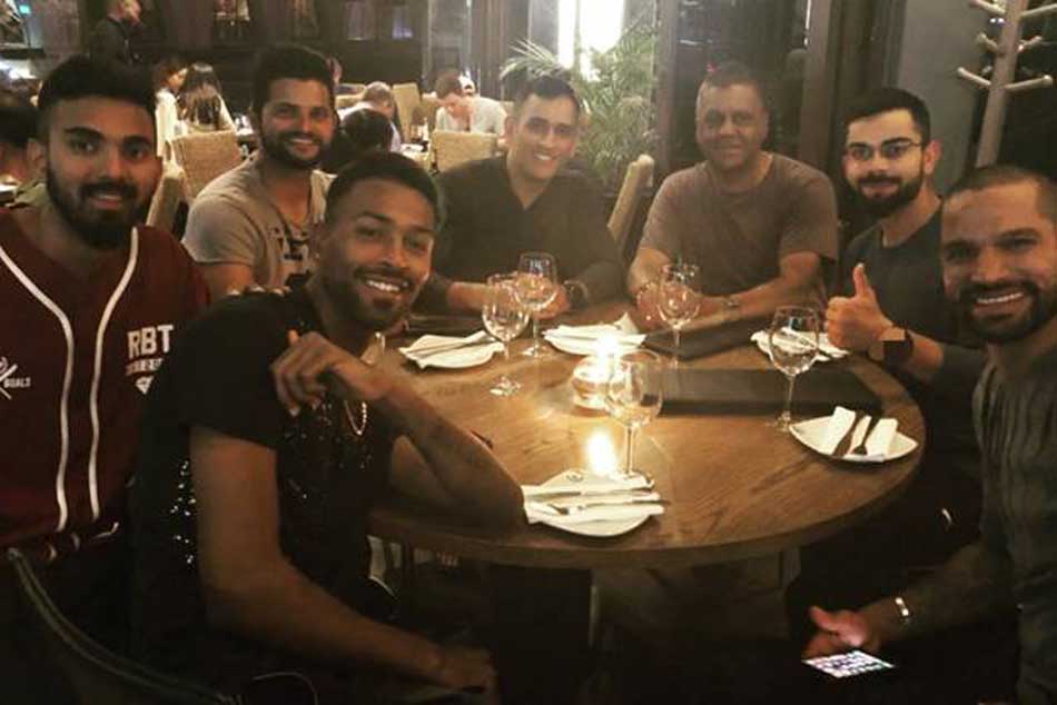 ఈ విజయం అనంతరం టీమిండియా ఆటగాళ్లు గ్రాండ్గా పార్టీ చేసుకున్నారు. ఈ పార్టీలో టీమిండియా కెప్టెన్ విరాట్ కోహ్లీ, మాజీ కెప్టెన్ ధోని, సురేష్ రైనా, శిఖర్ ధావన్, హార్దిక్ పాండ్యా తదితరులు పాల్గొన్నారు. ఇందుకు సంబంధించిన ఫొటోలను క్రికెటర్లు సోషల్ మీడియాలో అభిమానులతో పంచుకున్నారు.