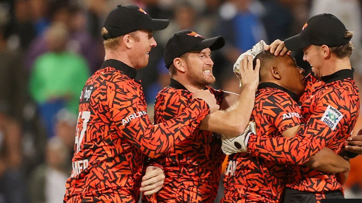 సౌతాఫ్రికా టీ20 లీగ్ (SA0)లో డిఫెండింగ్ ఛాంపియన్ సన్రైజర్స్ ఈస్టర్న్ కేప్ సంచలన విజయాలు నమోదు చేస్తుంది. బుధవారం జోబర్గ్ సూపర్ కింగ్స్తో జరిగిన మ్యాచ్లో తొమ్మిది వికెట్ల తేడాతో సన్రైజర్స్ ఘన విజయం సాధించింది. అంతేగాక బోనస్ పాయింట్ సంపాదించి ప్లేఆఫ్స్కు అర్హత సాధించింది.
