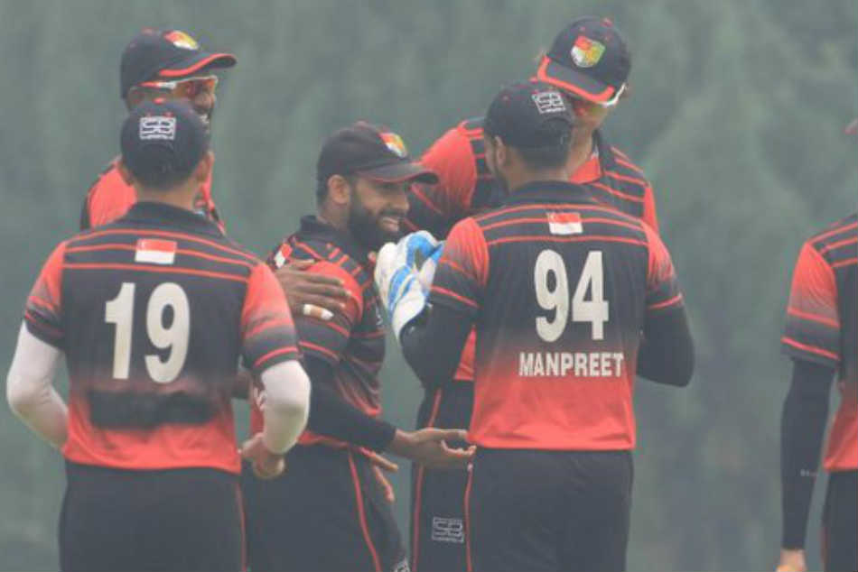 మ్యాచ్కి ముందు వర్షం పడటంతో 18 ఓవర్లకు కుదించారు. దీంతో తొలుత బ్యాటింగ్ చేసిన సింగపూర్ జట్టు నిర్ణీత ఓవర్లలో 9 వికెట్లు కోల్పోయి 181 పరుగులు చేసింది. సింగపూర్ జట్టులో ఏ ఒక్క బ్యాట్స్మెన్ కూడా హాఫ్ సెంచరీ చేయలేదు. ఓపెనర్లు రోహాన్ రంగరాజన్(22 బంతుల్లో 39), సురేంద్రన్ చంద్రమోహాన్(23) పరుగులతో చక్కటి శుభారంభాన్నిచ్చారు.