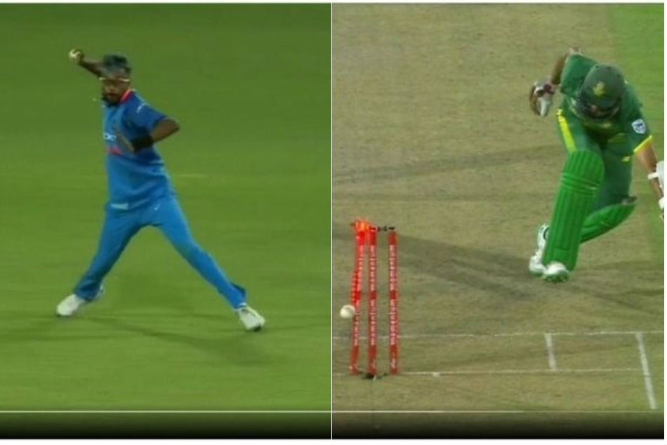 తన అద్భుతమైన ఫీల్డింగ్తో డైరెక్ట్ త్రో విసిరి ఆమ్లా(71)ను రనౌట్ చేశాడు. దీంతో ఐదో వన్డేలో భారత్ విజయం మరింత సులువైంది. భువనేశ్వర్ వేసిన 35 ఓవర్ రెండో బంతికి ఆమ్లా మిడాఫ్ దిశగా ఆడి సింగిల్ తీసే ప్రయత్నం చేశాడు. ఆ పాయింట్లో ఫీల్డింగ్ చేస్తున్న పాండ్యా బంతి వికెట్లకు తాకి బెయిల్స్ ఎగిరి లైట్లు వెలిగిన మిల్లీ సెకన్ల వ్యవధిలోనే ఆమ్లా బ్యాట్ను క్రీజులో ఉంచాడు.