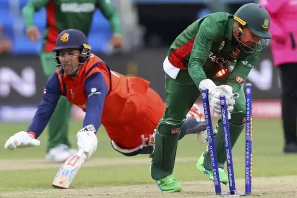 హోబర్ట్: టీ20 ప్రపంచకప్ 2022లో బంగ్లాదేశ్ శుభారంభం చేసింది. నెదర్లాండ్తో సోమవారం ఉత్కంఠగా సాగిన మ్యాచ్లో సమష్టిగా రాణించిన బంగ్లాదేశ్ 9 పరుగులతో గెలుపొందింది. ఈ మ్యాచ్లో ముందుగా బ్యాటింగ్ చేసిన బంగ్లాదేశ్.. నిర్ణీత 20 ఓవర్లలో 8 వికెట్లకు 144 పరుగులు చేసింది. ఈ మ్యాచ్లో ముందుగా బ్యాటింగ్ చేసిన బంగ్లాదేశ్ నిర్ణీత 20 ఓవర్లలో 8 వికెట్లకు 144 పరుగులు మాత్రమే చేసింది. బంగ్లాదేశ్ జట్టులో అసిఫ్ హోస్సెన్(27 బంతుల్లో 2 ఫోర్లు, 2 సిక్స్లతో 38), ఓపెనర్ నజ్ముల్ హోస్సెన్ షాంటో(20 బంతుల్లో 4 ఫోర్లతో 25) టాప్ స్కోరర్లుగా నిలవగా.. చివర్లో మోసాద్దెక్ హోస్సెన్(12 బంతుల్లో 2 ఫోర్లు, సిక్స్తో 20) మెరుపులు మెరిపించాడు. దాంతో బంగ్లా.. నెదర్లాండ్ ముందు పోరాడే లక్ష్యాన్ని ఉంచగలిగింది.