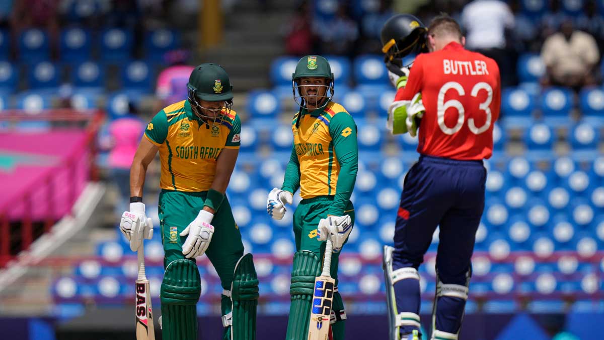దక్షిణాఫ్రికా ఆడిన రెండింట్లో గెలిచి నాలుగు పాయింట్లతో +0.625 నెట్రన్రేటుతో ఉంది. అయితే వెస్టిండీస్కు (2 పాయింట్లు, +1.814) మెరుగైన రన్రేటు ఉండటంతో సౌతాఫ్రికాకు సెమీస్ బెర్త్ గ్యారెంటీ లేదు. సెమీఫైనల్స్కు వెళ్లాలంటే వెస్టిండీస్తో జరిగే ఆఖరి లీగ్ మ్యాచ్లో విజయం సాధించాల్సిందే. ఒకవేళ దక్షిణాఫ్రికా ఓటమిపాలైతే.. అమెరికా చేతిలో ఇంగ్లండ్ (2 పాయింట్లు, +0.412) ఓడాలి లేదా తమ రన్రేటు దాటకుండా ఉండాలి.