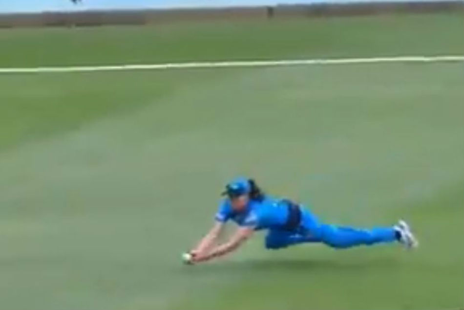తాజాగా మహిళల బిగ్బాష్ లీగ్లో ఓ డైవింగ్ క్యాచ్ సోషల్ మీడియాలో వైరల్ అయింది. బ్రిస్బేన్ హీట్ వుమెన్ వర్సెస్ అడిలైడ్ స్ట్రయికర్స్ వుమెన్ మధ్య శనివారం జరిగిన మ్యాచ్లో ఈ స్టన్నింగ్ క్యాచ్ వెలుగు చూసింది. 17 బంతుల్లో 35 పరుగులు చేయాల్సిన తరుణంలో.. అడిలైడ్ స్పిన్నర్ అమంద వెల్లింగ్టన్ విసిరిన ఫుల్టాస్ బంతిని అమెలియా కేర్ మిడ్ వికెట్ మీదుగా భారీ షాట్ ఆడింది. ఆ షాట్ చూసిన అందరూ బౌండరీకి వెళుతుందని అనుకున్నారు.