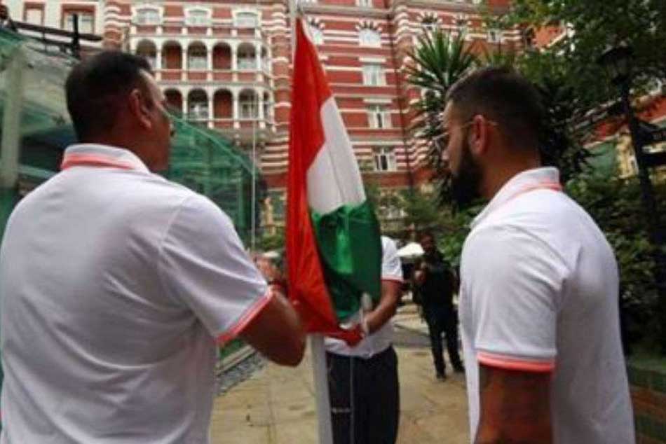 లండన్: సుదీర్ఘ పర్యటనలో భాగంగా ఇంగ్లాండ్లో ఉన్న టీమిండియా బ్రిటన్ రాజధాని లండన్లో 72వ స్వాతంత్ర్య దినోత్సవ వేడుకలు జరుపుకొంది. టీమిండియా కోచ్ రవిశాస్త్రి, కెప్టెన్ విరాట్ కోహ్లీ జాతీయ పతాకాన్ని ఎగురవేశారు. నాటింగ్హామ్కు బయలుదేరే ముందు హోటల్ బయటకు వచ్చిన ఆటగాళ్లంతా ఒకే చోటకు చేరారు. పతకావిష్కరణ కాగానే జాతీయగీతం ఆలపించారు. 'భారత క్రికెట్ జట్టు తరఫున ఇక్కడి నుంచి ప్రతీ ఒక్కరికి స్వాతంత్య్ర దినోత్సవ శుభాకాంక్షలు. జై హింద్' అని కోహ్లీ పేర్కొన్నాడు.