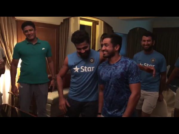 దీంతో జడేజాతో పాటుగా కరుణ్ నాయర్ కూడా జట్టు సభ్యుల మధ్య తన 25వ జన్మదినాన్ని జరుపుకున్నాడు. ఈ పుట్టినరోజు వేడుకల్లో టీమిండియా టెస్టు కెప్టెన్ విరాట్ కోహ్లీతో పాటు హెడ్ కోచ్ అనిల్ కుంబ్లే కూడా హాజరయ్యారు. దీనికి సంబంధించిన వీడియోని బీసీసీఐ ట్విట్టర్లో పోస్టు చేసింది.