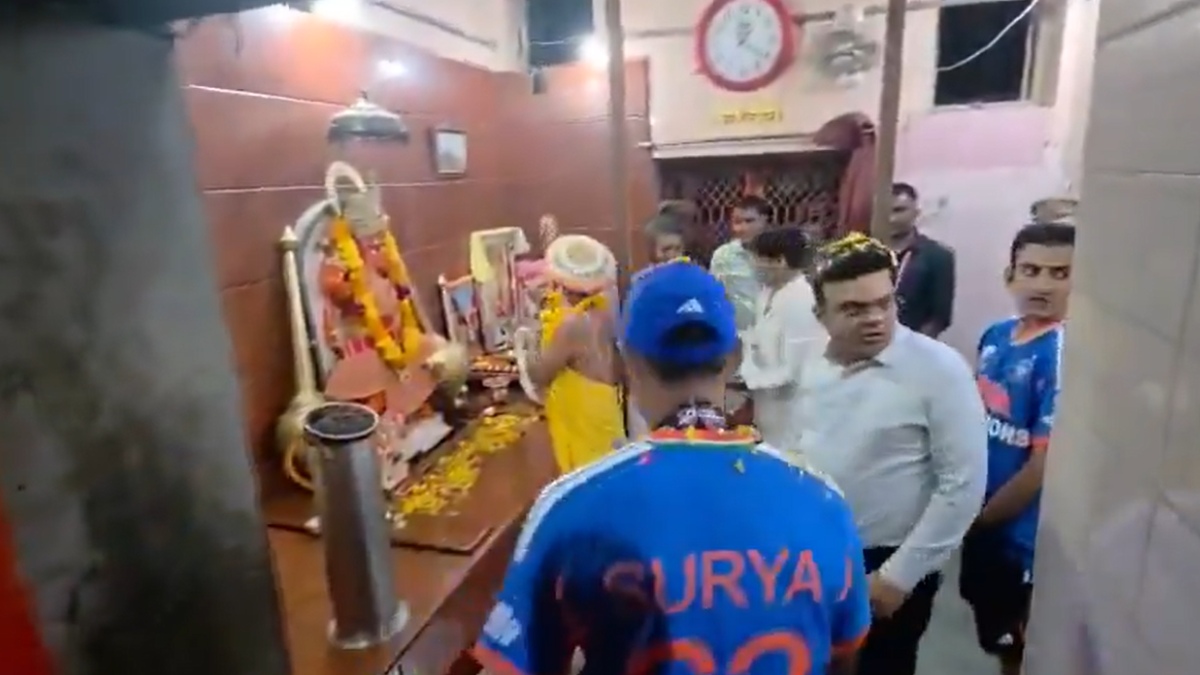 ప్రపంచాన్ని గెలిచిన ఆనందంలో ఉన్న టీమిండియా సభ్యులు, తమ విజయాన్ని దైవానికి అంకితం చేస్తూ ఆలయానికి వెళ్లారు. కెప్టెన్ సూర్యకుమార్ యాదవ్ స్వయంగా ప్రపంచకప్ ట్రోఫీని చేత్తో పట్టుకుని ఆలయంలోకి ప్రవేశించారు. దీనికి సంబంధించిన వీడియో ప్రస్తుతం నెట్టింట వైరల్గా మారింది. ఈ వీడియోలో సూర్యకుమార్, గౌతమ్ గంభీర్, జై షా అత్యంత భక్తిశ్రద్ధలతో స్వామివారిని దర్శించుకోవడం మనం చూడవచ్చు. ప్రస్తుతం ఈ వీడియో సోషల్ మీడియాలో విపరీతంగా వైరల్ అవుతోంది.
