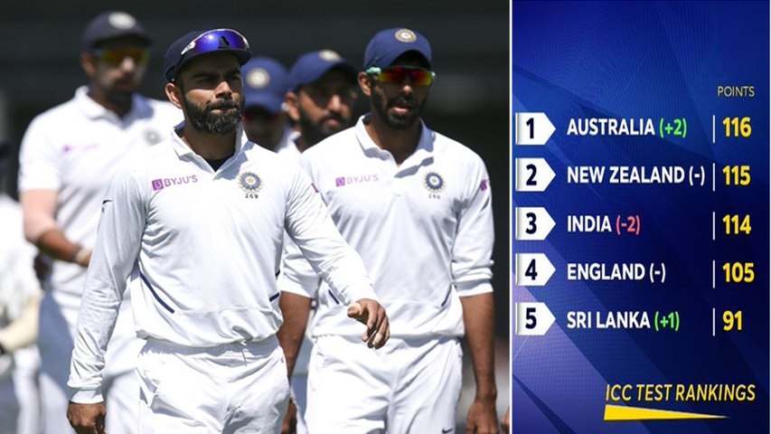 కోహ్లీసేన 2016 అక్టోబర్ నుంచి టెస్టుల్లో అగ్రస్థానంలో కొనసాగుతోంది. కాగా 2016-17లో సాధించిన 12 టెస్టు విజయాలు, ఒక ఓటమిని తాజా ర్యాంకింగ్స్లో పరిగణనలోకి తీసుకోకపోవడంతో నంబర్వన్ ర్యాంకు చేజారింది. ఆ కాలంలో టీమిండియా ఆడిన ఐదు సిరీసులనూ కైవసం చేసుకుంది. ఇందులో ఆస్ట్రేలియా, ఇంగ్లండ్ పైనా విజయాలున్నాయి. అదే సమయంలో దక్షిణాఫ్రికా, టీమిండియా చేతిలో ఆసీస్ ఓటమి పాలైంది. గత ఏడాది ఆగస్టు నుంచి 9 టెస్టులాడిన టీమిండియా 7 గెలిచి.. 2 ఓడింది. కాగా ప్రపంచ టెస్టు చాంపియన్షిప్ పాయింట్ల పట్టికలో భారత్ అగ్రస్థానంలోనే కొనసాగుతున్నది.
